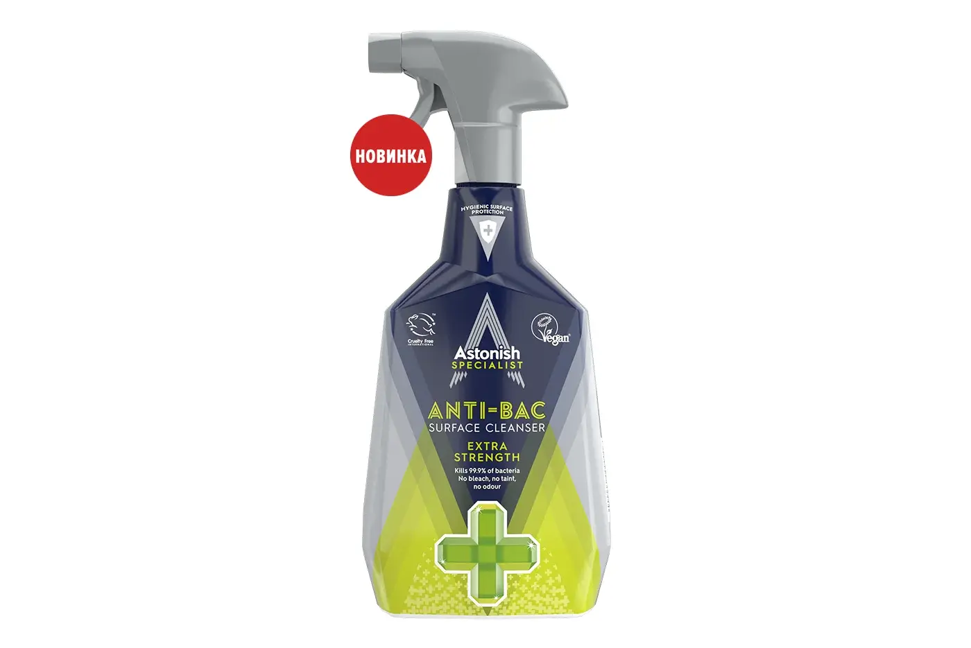 Antibakterial ta’sirga ega sirt tozalagich (Astonish Specialist ANTI-BAC SURFACE CLEANSER) uy ichidagi barcha sirtlarga mos keladi. U ajoyib tozalash xususiyatlariga ega bo‘lib, antibakterial komponentlar maishiy yuzalardagi bakteriyalarga samarali qarshi kurashadi.