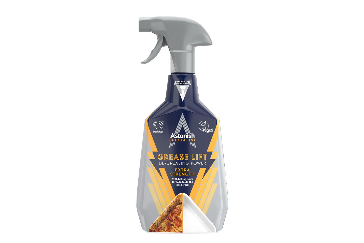 Kuchli apelsin moyining qo‘shimcha afzalligi bilan yog‘ qoldiqlari va qiyin dog‘larni samarali yo‘qotadi. Tozalagichni uydagi turli yuzalarda, yog‘ to‘planadigan joylarda qo‘llang: oshxona yuzalari, plitalar va duxovka eshiklarida.