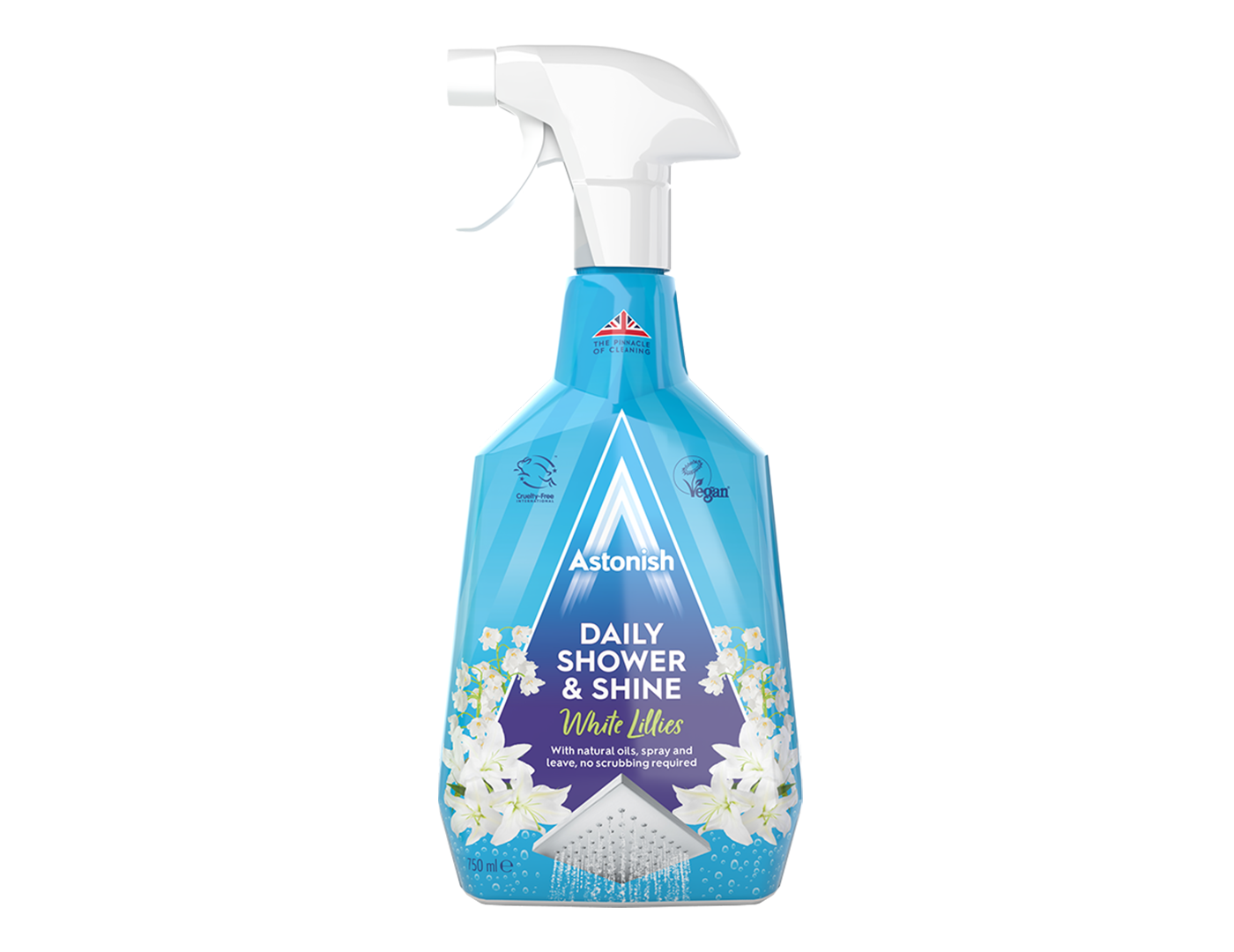 Astonish kundalik foydalanish uchun dush kabinasi tozalagichi, oq lilya hidi bilan. Suv izlari va ohak qatlamining paydo bo‘lishini oldini oladi. Oq lilya hidi bilan (Daily Shower Shine).
