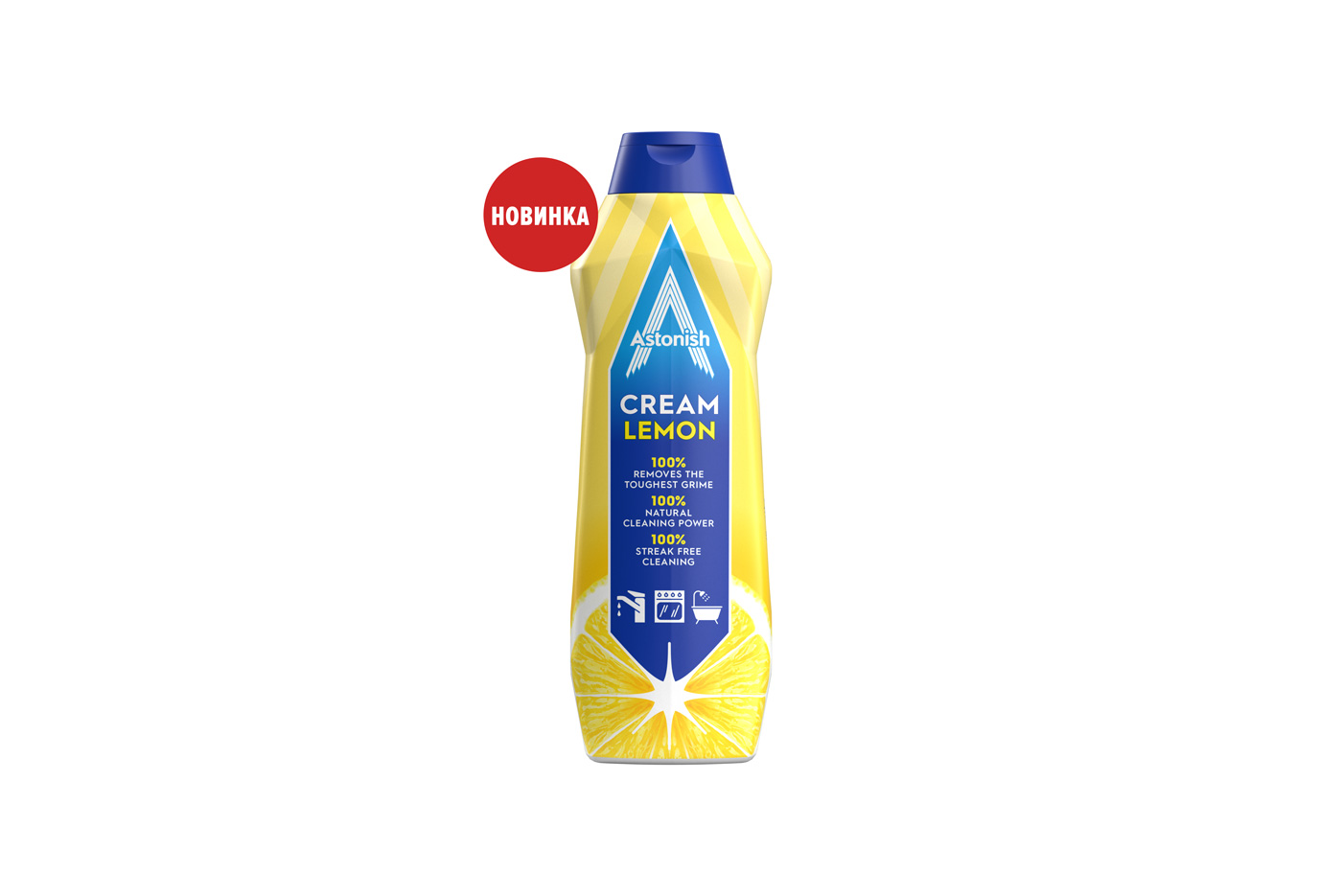 Oshxona va hammom uchun Astonish krem-tozalagichi (Astonish CREAM LEMON) yuzalarni yanada chuqurroq tozalaydi va ularga yarqiragan jiloni beradi. Vosita oshxona hamda hammom yuzalarida qo‘llash uchun mos. Yog‘ va kirga chidamli.