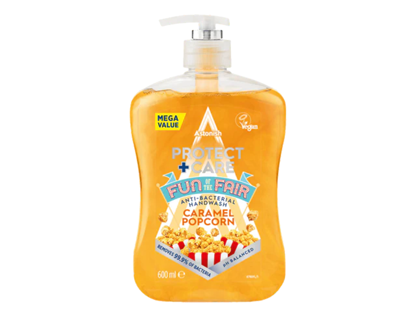 Antibakterial suyuq qo‘l sovuni dozator bilan Himoya + Parvarish (Protect + Care), karamel va popkorn hidi bilan. Qo‘llarni yuvish uchun mo‘ljallangan, 99,9% bakteriyalarni, kir va mikroblarni yo‘qotadi. Tarkibidagi qo‘shimcha namlovchi krem tufayli qo‘llar yumshoq bo‘lib qoladi. Sovun teri xavfsizligi bo‘yicha dermatologik sinovlardan o‘tkazilgan.