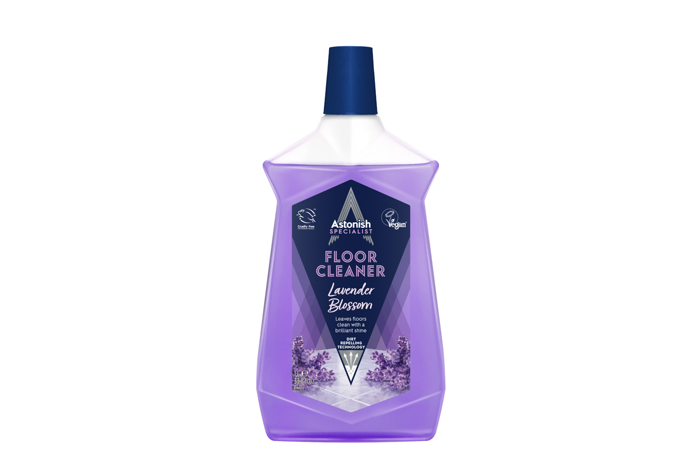 Astonish intensiv pol tozalagichi, kirni qaytaruvchi ta’sirga ega. Barcha turdagi pol qoplamalari uchun mos. Lavanda hidi bilan (Specialist Floor Cleaner Lavender). Maxsus texnologiya yordamida yuzada himoya qatlami hosil qilib, tozalashdan keyin dog‘larning qayta paydo bo‘lishini oldini oladi.