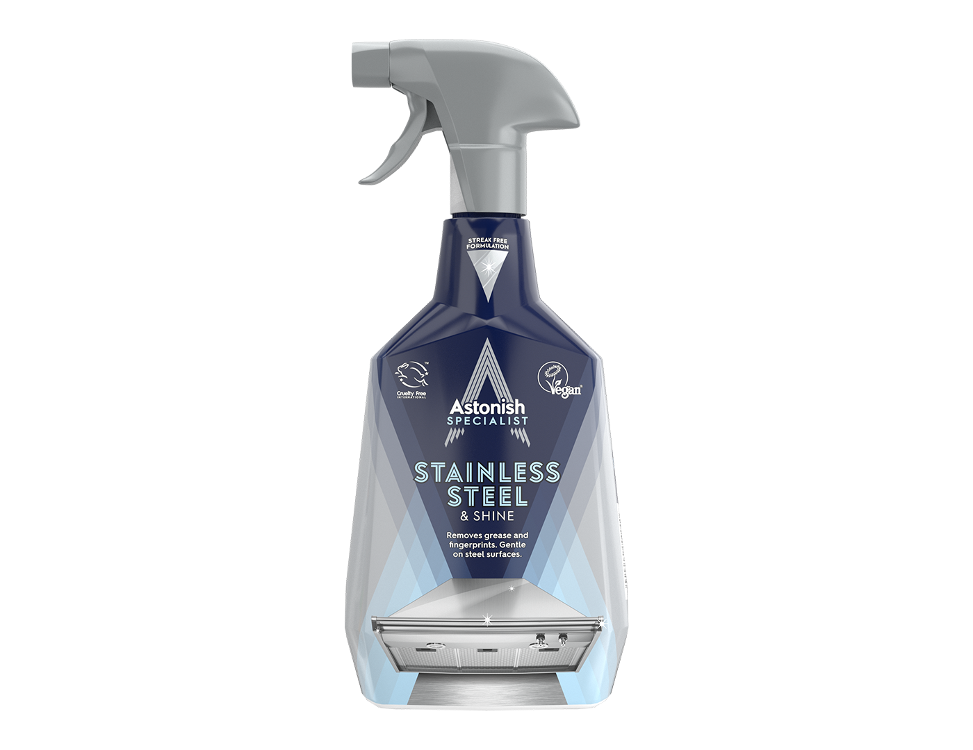 Sovuqlik saqlagichlar, oshxona dudburonlari va rakovinalar uchun zanglamaydigan po‘lat buyumlar tozalash spreyi
