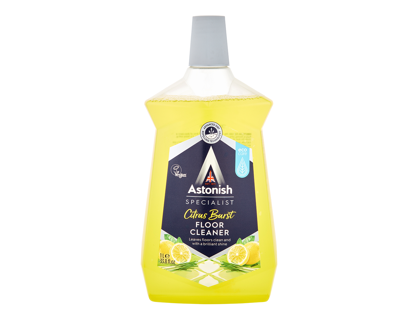 Astonish intensiv pol tozalagichi, kirni qaytaruvchi ta’sirga ega. Barcha turdagi pol qoplamalari uchun mos. Limon hidi bilan (Specialist Floor Clean Citrus). Maxsus texnologiya yordamida yuzada himoya qatlami hosil qilib, keyingi dog‘larning paydo bo‘lishini oldini oladi.